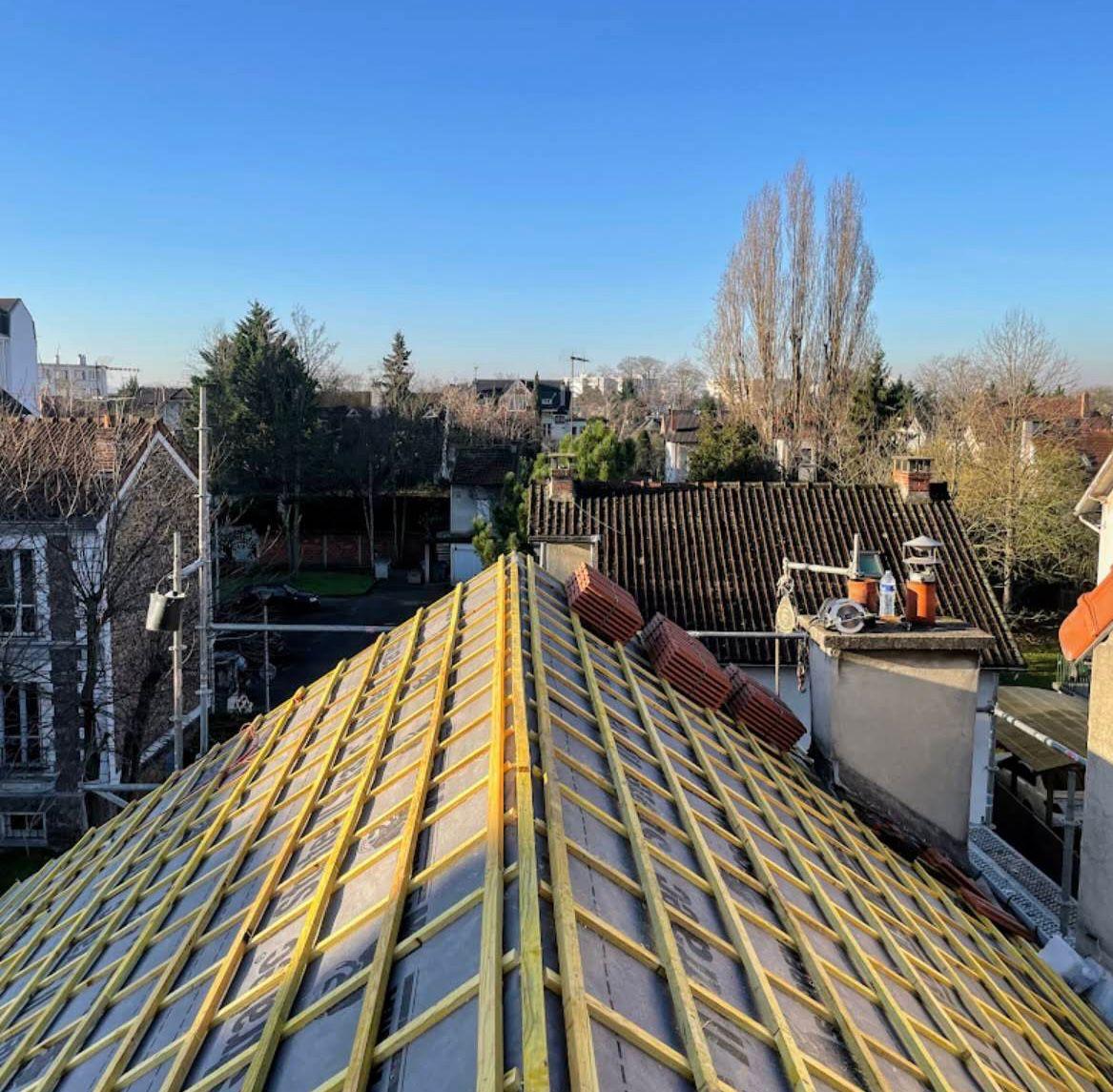 Chez ERBS à Saint-Germain-en-Laye (78100), nous intervenons sur tous types de toitures, qu'il s'agisse de tuiles traditionnelles, de toits en bac acier ou de toitures-terrasses. Notre équipe expérimentée est en mesure de :